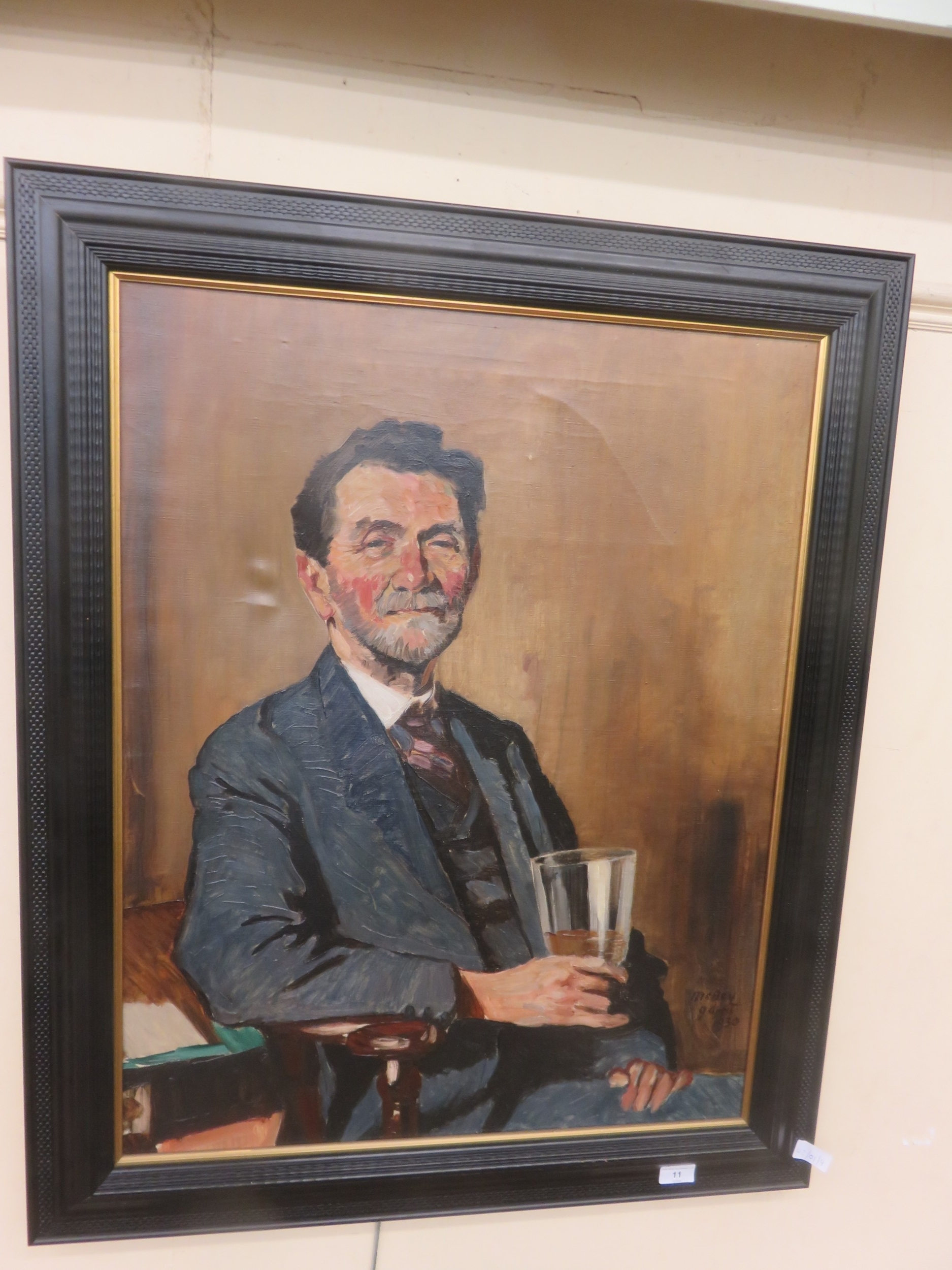 Framed Oil Painting - Gentleman with Drink - signed McBey 9th April 1930 - 76cm x 60 cm