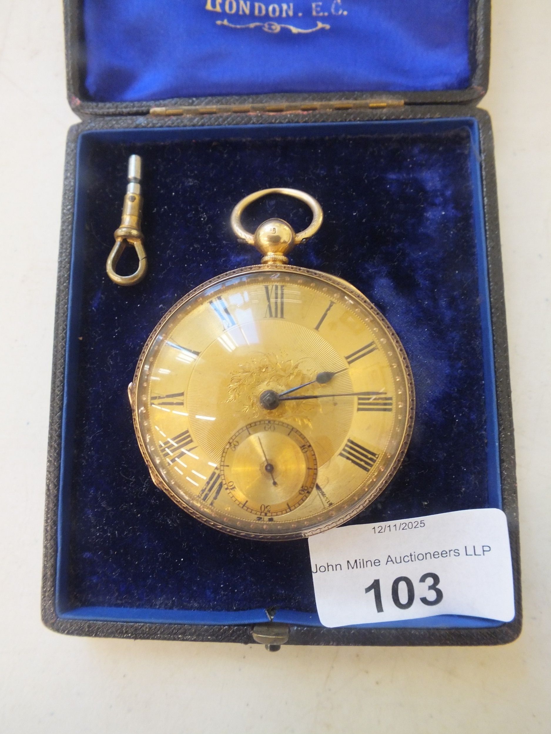 18ct Gold Cased Key wind Open Face Pocket Watch - 125.3g