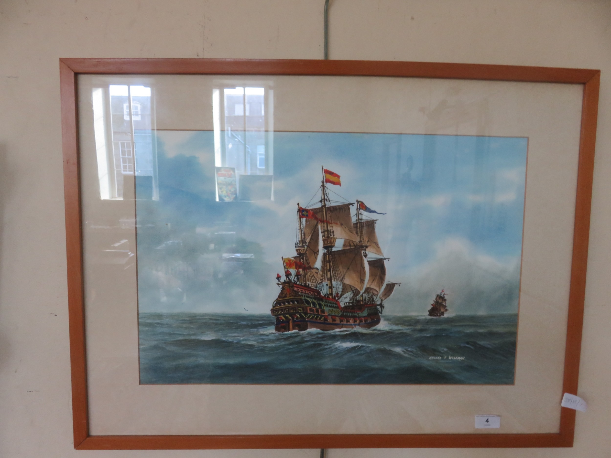 Framed Watercolour, Spanish Galleon's, George P Wiseman