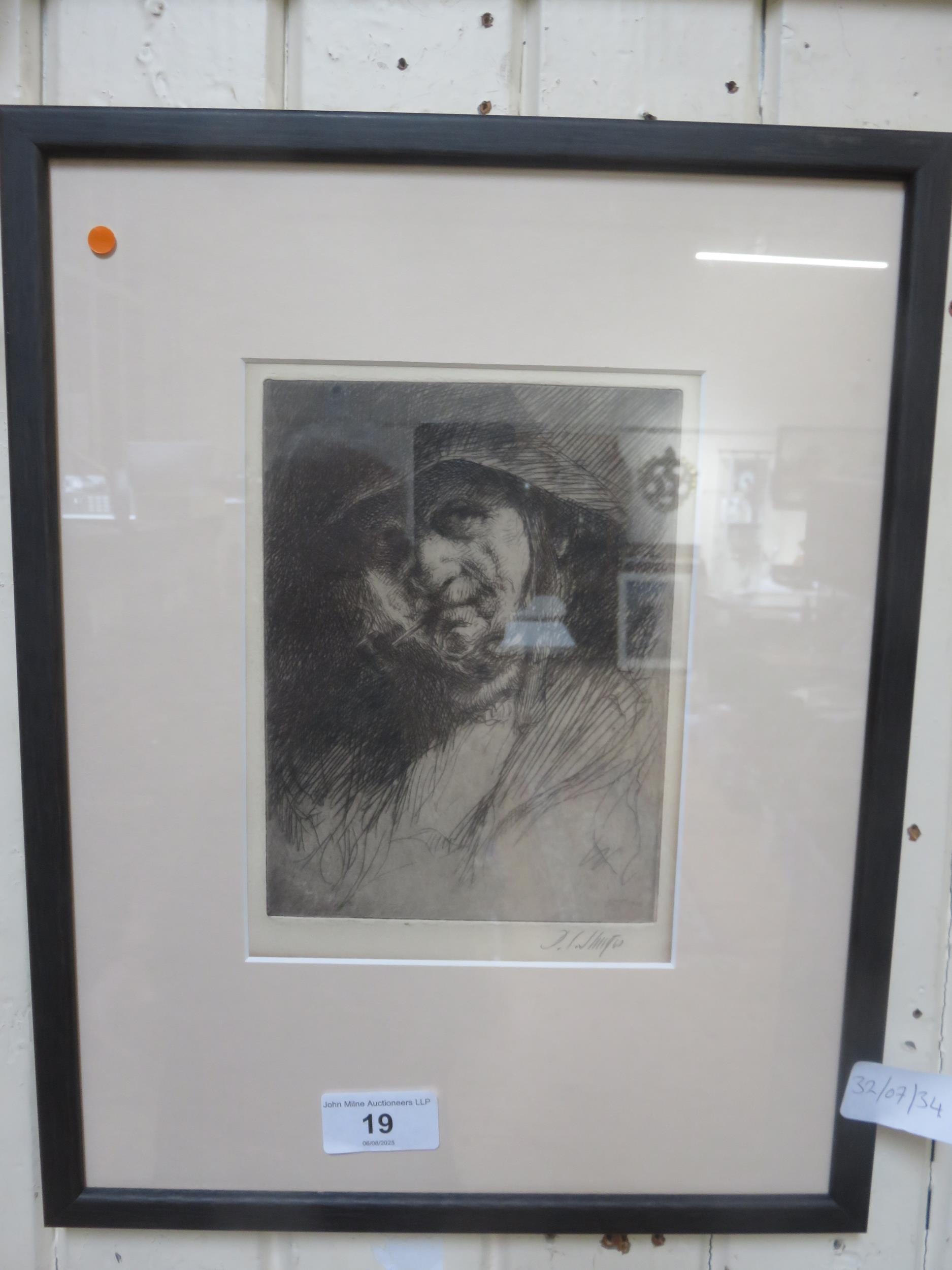 Framed Signed Etching "Fisherman" Dwight Case Sturges