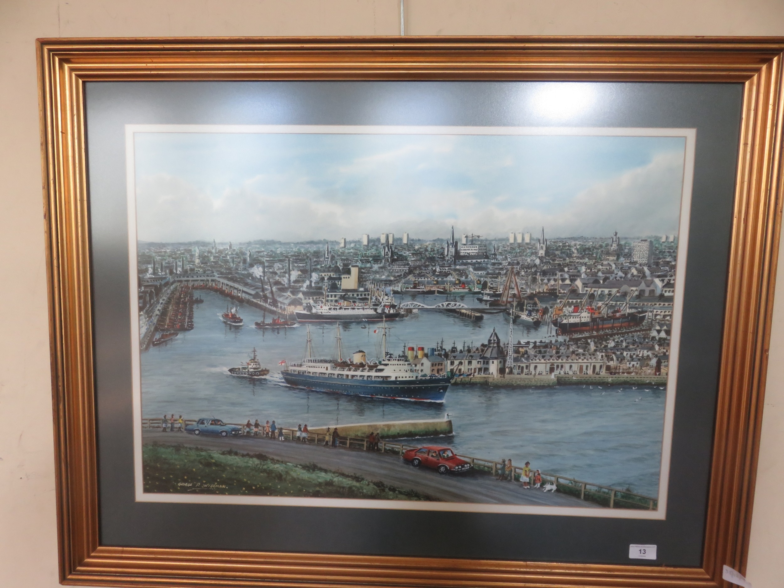 Framed Watercolour, An Expansive View of Aberdeen and Harbour, George P Wiseman