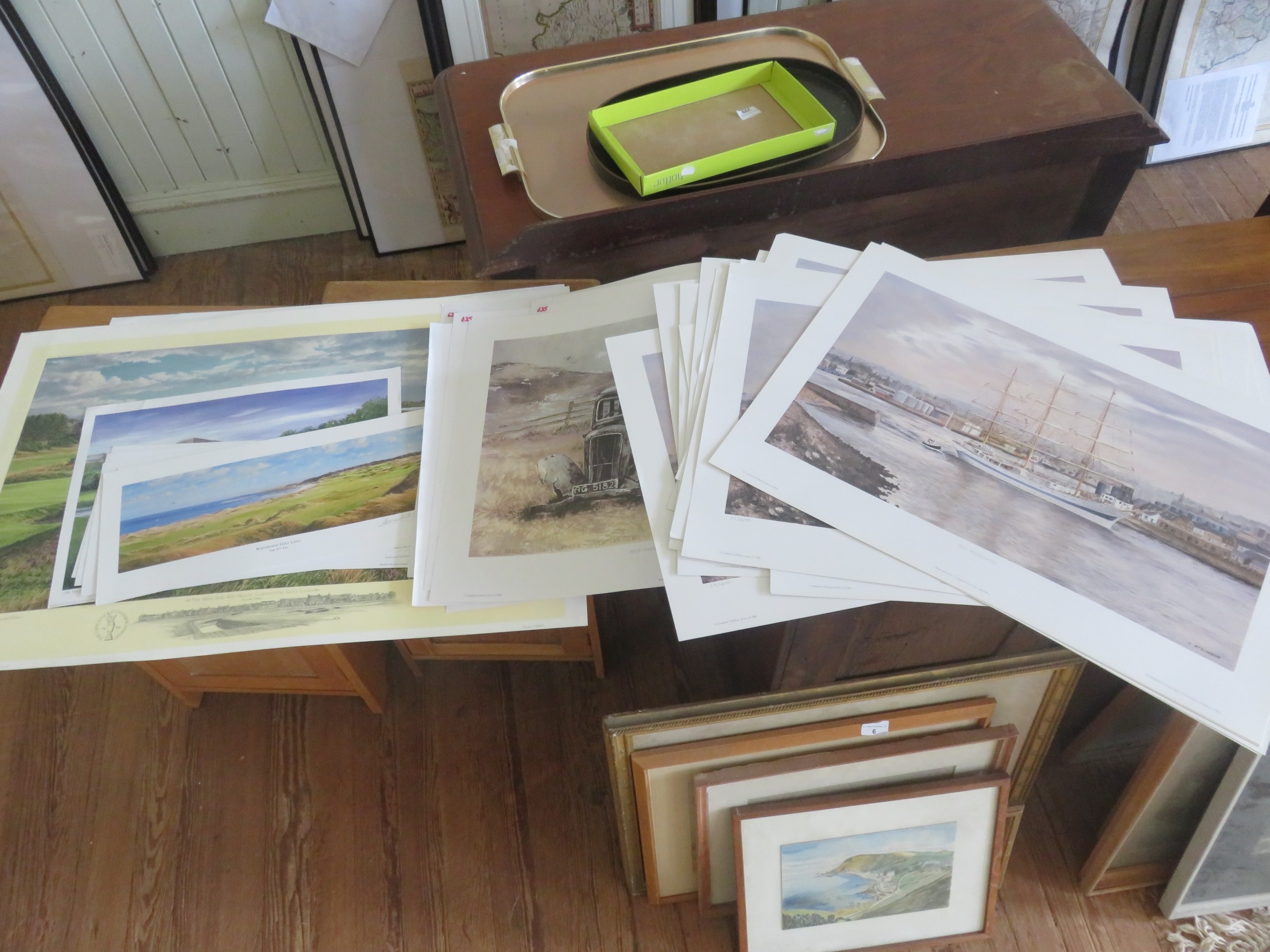 Large Lot of Unframed Prints, Golfing, Tall Ships etc