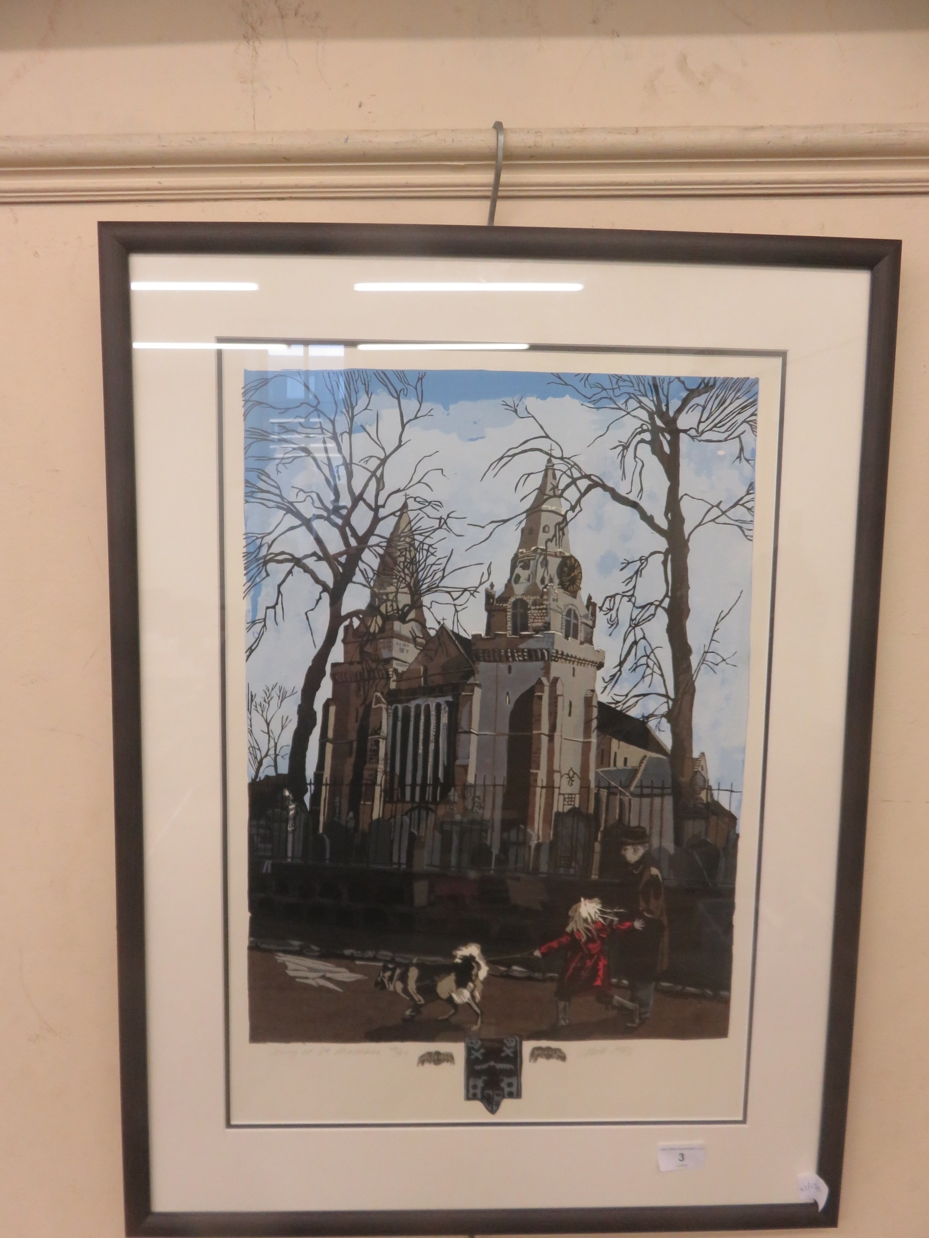 Framed Signed Print - Amy at St. Machars - signed Charmaine Hall, 1983 - 78cm x 55cm