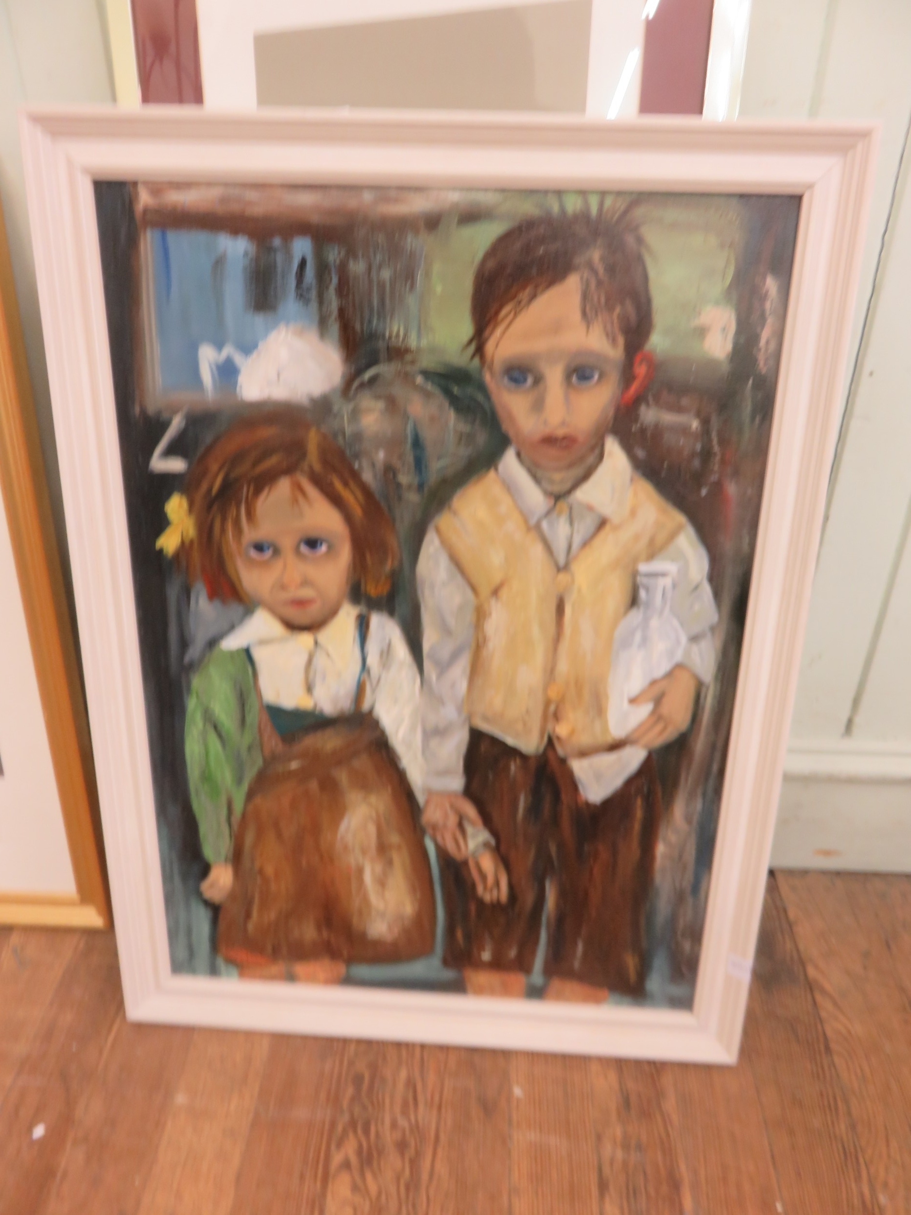 Framed Oil on Board - Boy and Girl
