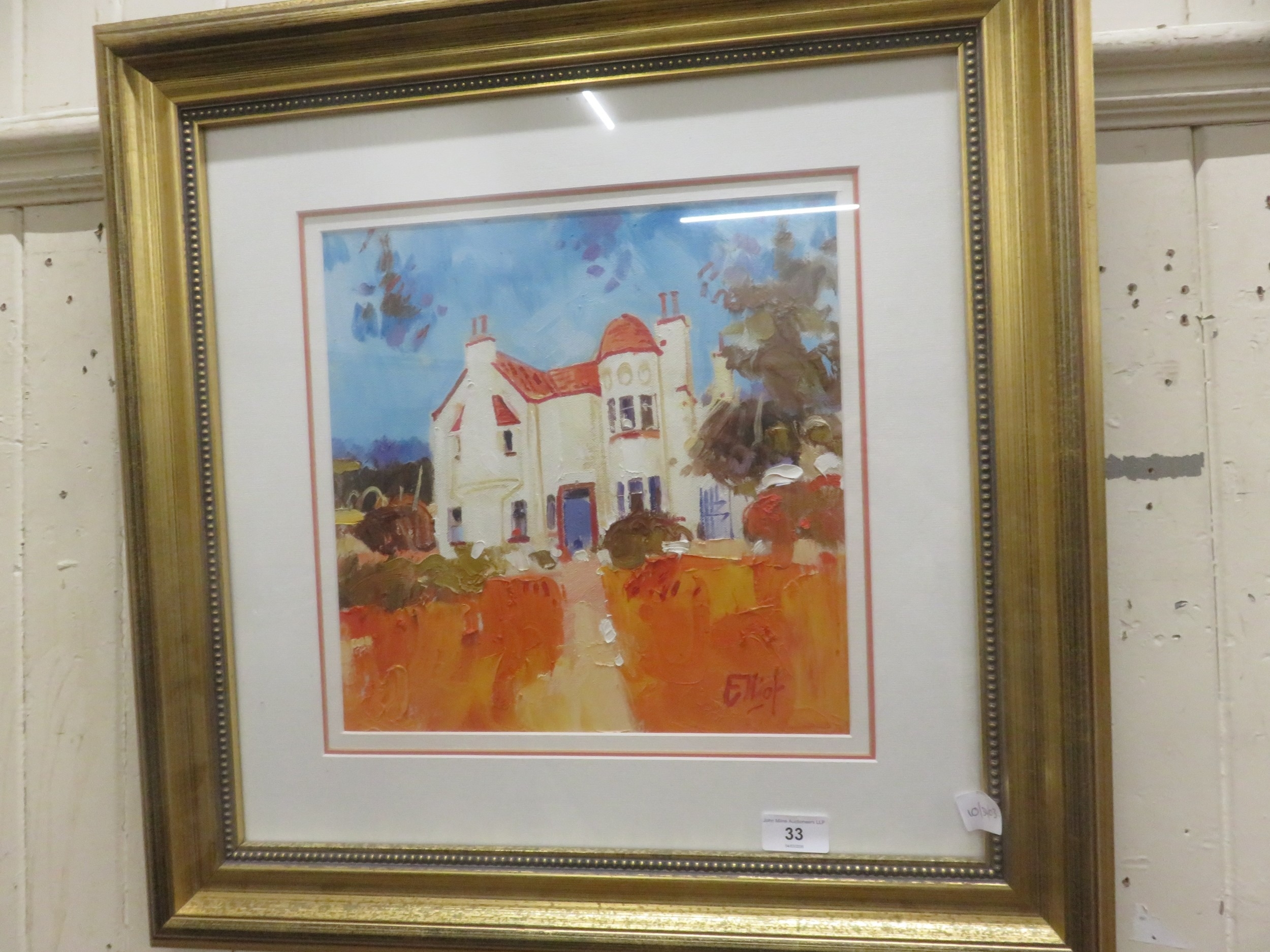 Gilt Framed Oil Painting "A House in Gullane", signed Elliot