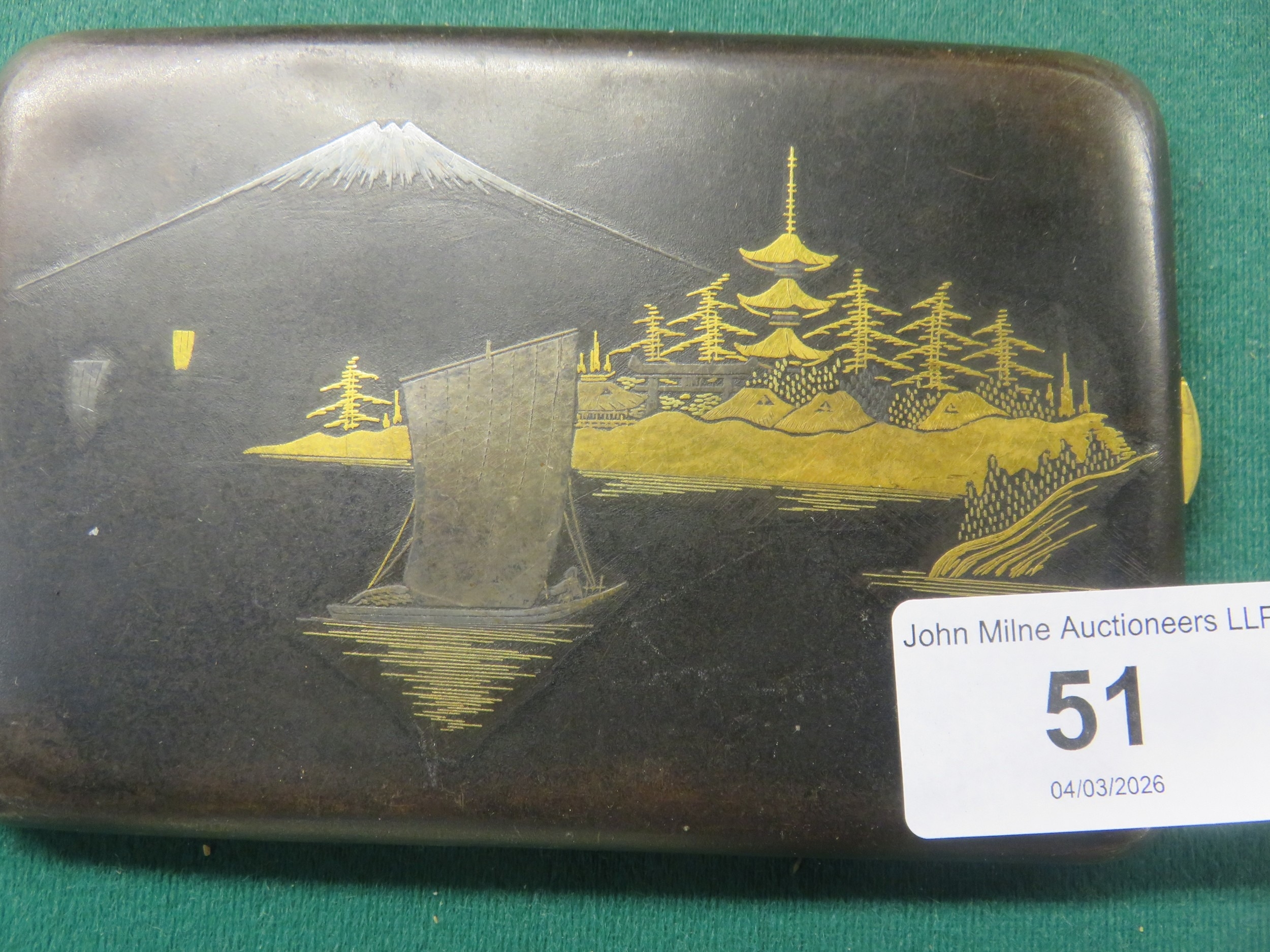 Japanese Komai Gold and Silver Inlaid Mixed Metal Cigarette Case