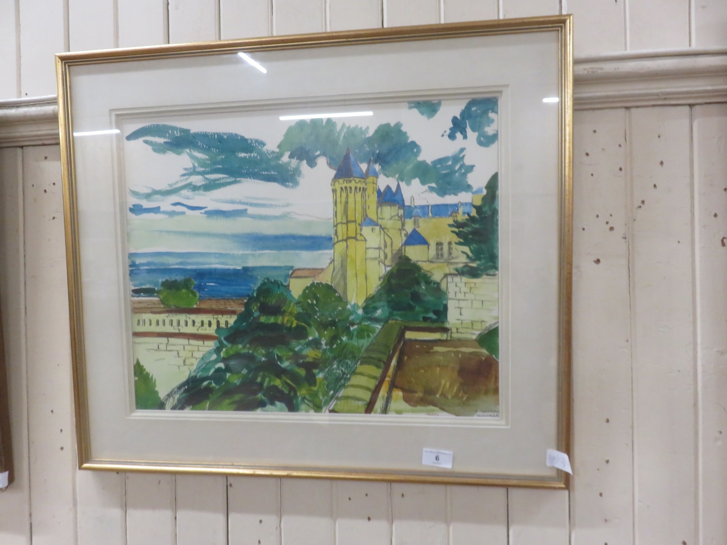 Gilt Framed Watercolour - The Lowe Chateau Sou Mer - John Batty