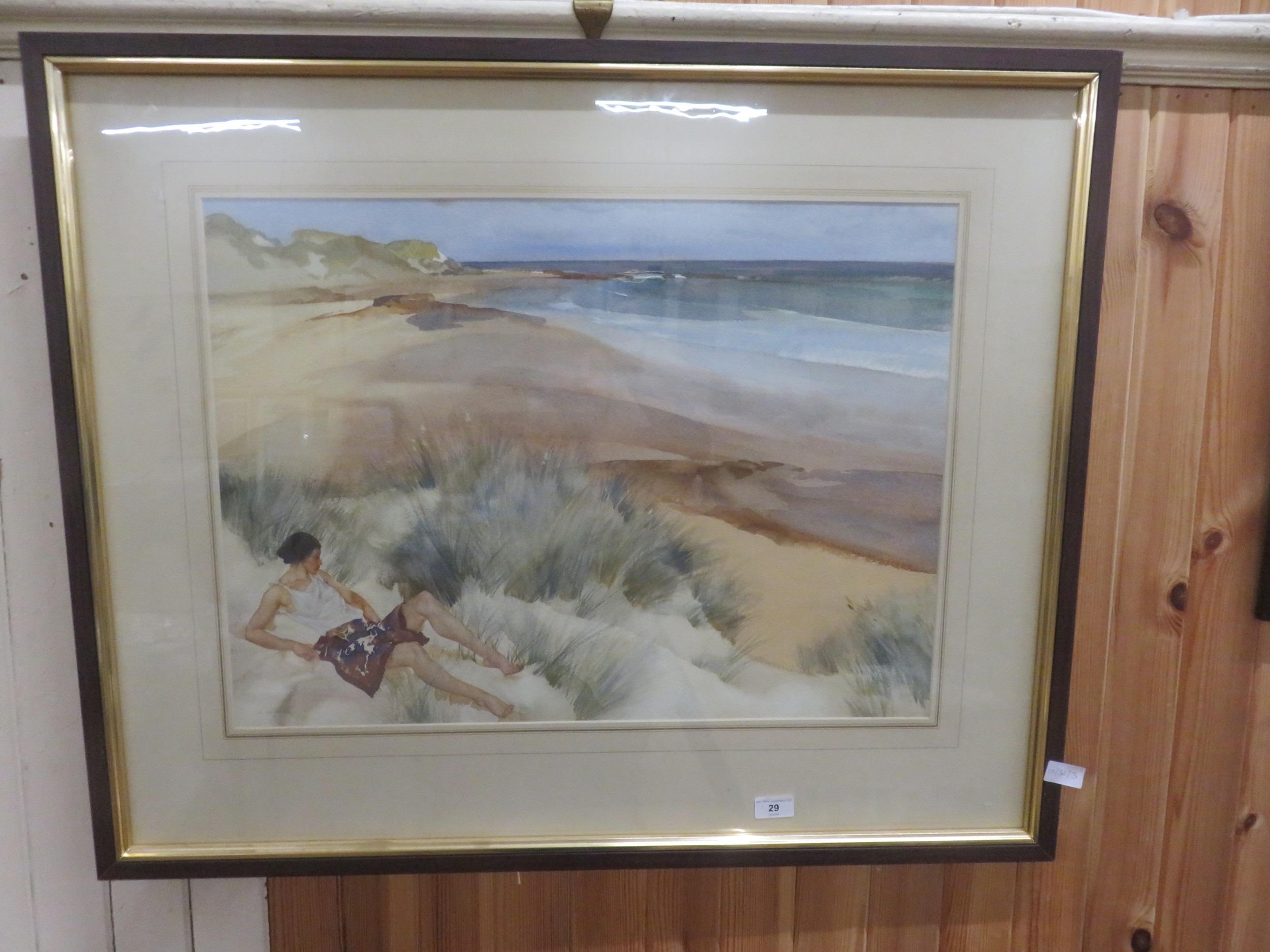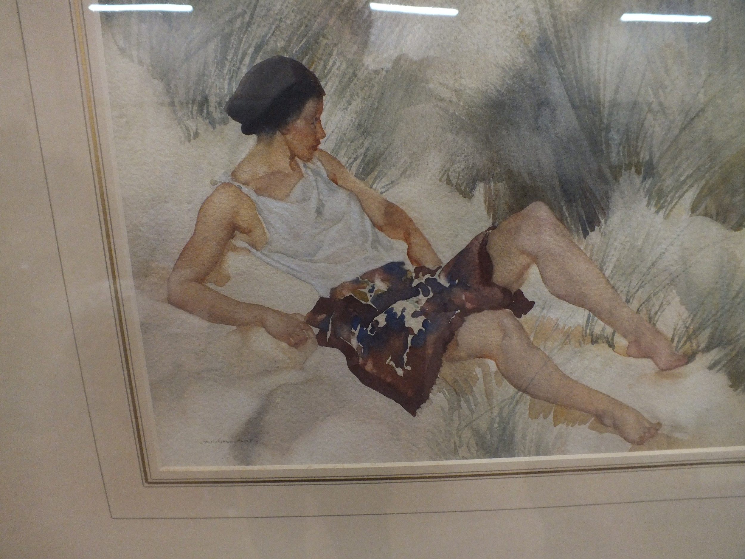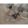 Framed Watercolour "Reclining Female at Shoreline", Sir William Russell Flint, 48 cm x 67 cm