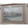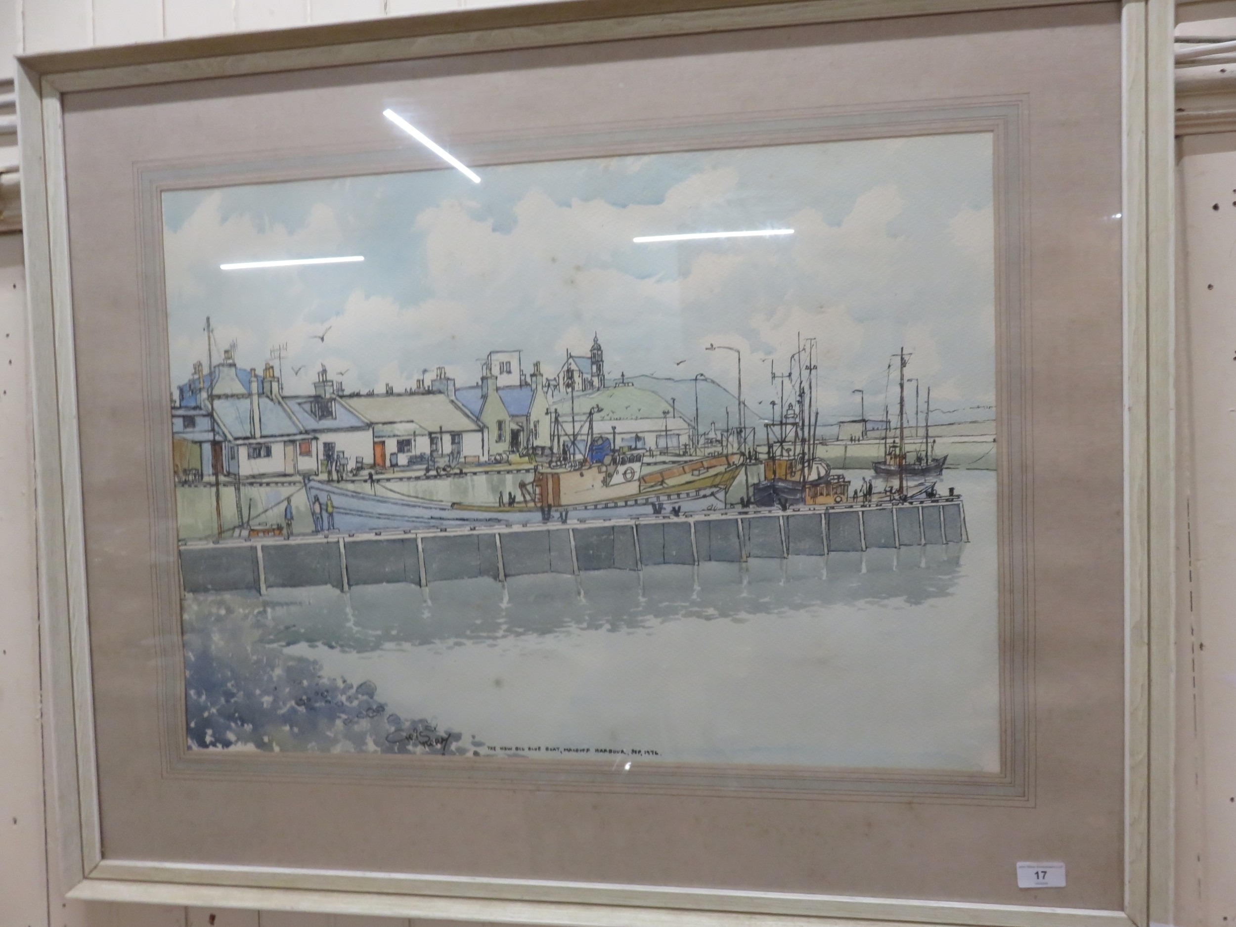 Large Framed Watercolour "The Big Blue Boat, Macduff Harbour September 1976" signed Chris Merry